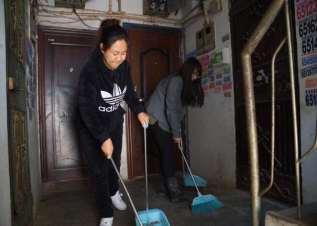 上圖為團(tuán)員們清潔公共衛(wèi)生區(qū)域