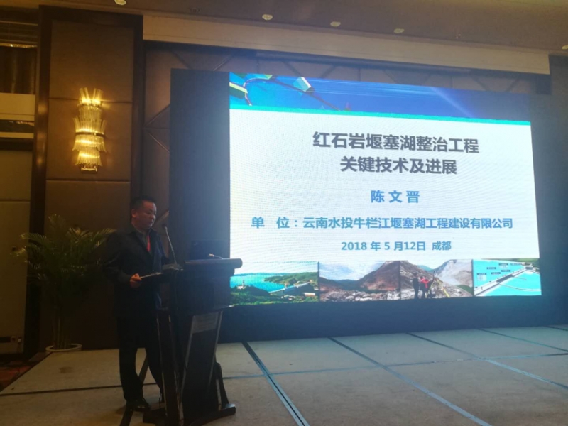受大會(huì)邀請(qǐng),云南水投堰塞湖公司總經(jīng)理陳文晉作了題為“紅石巖堰塞湖整治工程關(guān)鍵技術(shù)及進(jìn)展”的報(bào)告。報(bào)告圍繞魯?shù)椤?.03”地震后堰塞湖整治工程中的堰塞體防滲墻及高邊坡治理兩大世界性難題的關(guān)鍵技術(shù)及進(jìn)展做了詳細(xì)介紹。